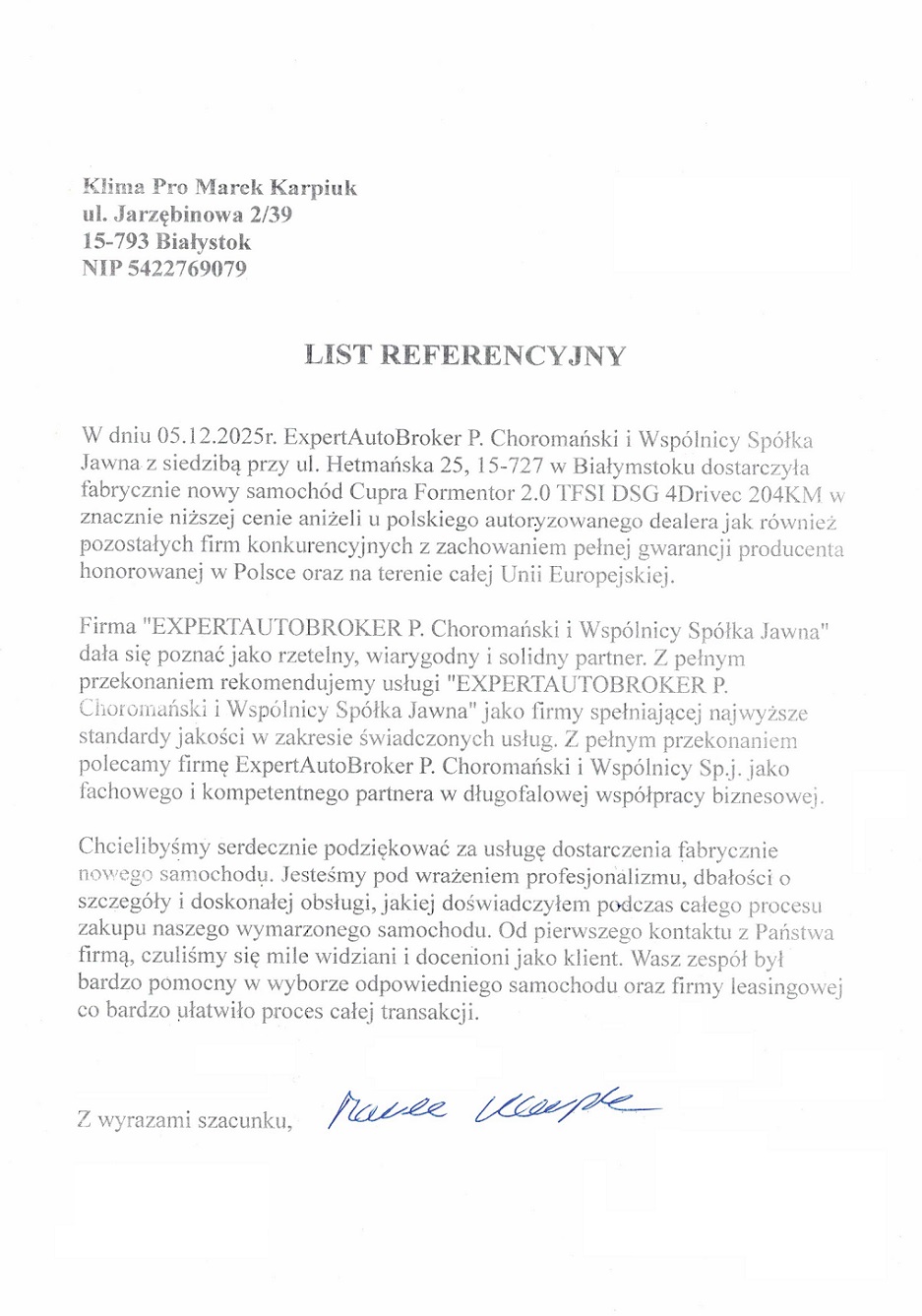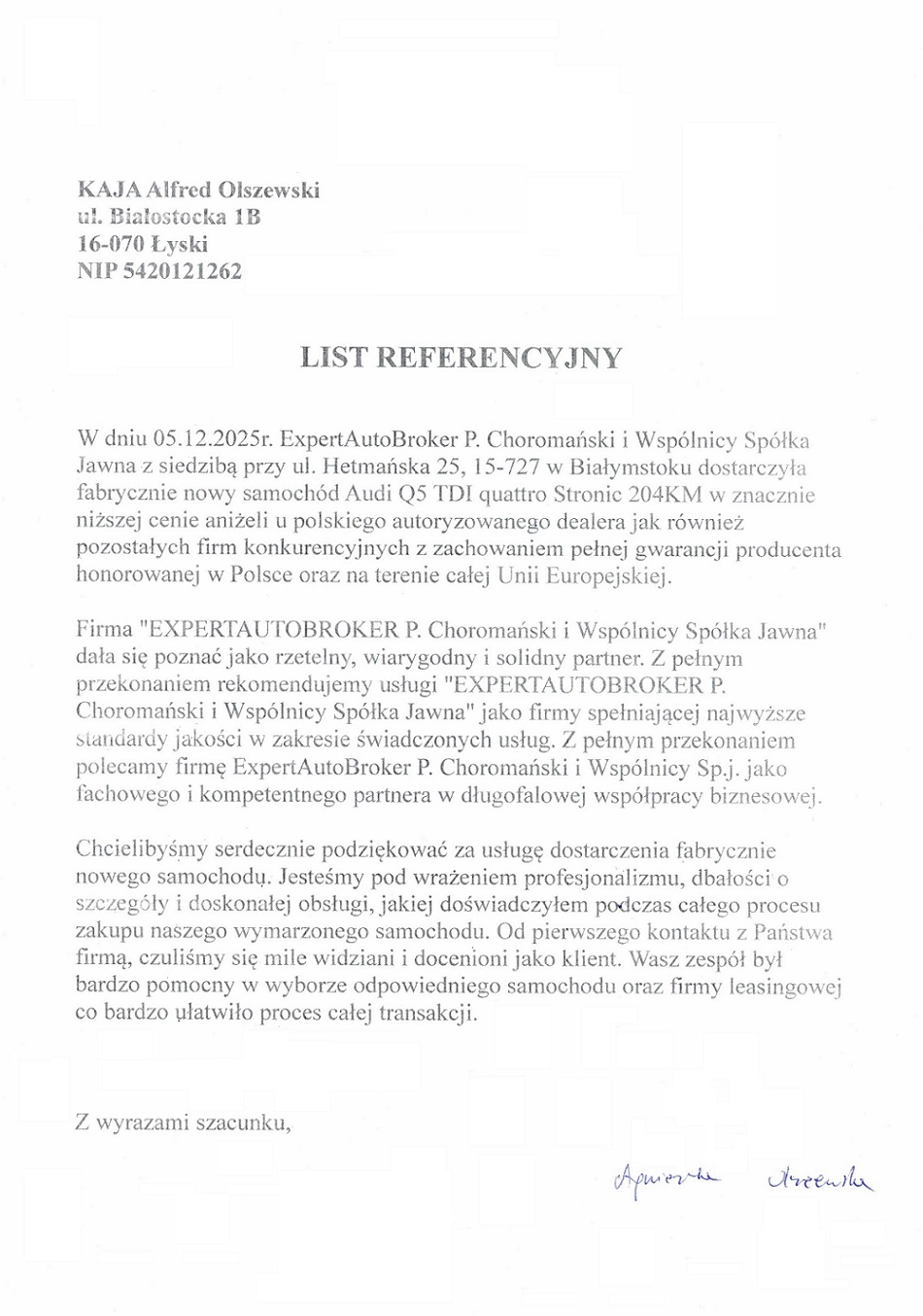 Jako jedyny broker samochodowy w Polsce, nasza firma została wyróżniona prestiżową nagrodą ZŁOTY CERTYFIKAT RZETELNOŚCI,przyznawaną przez Krajowy Rejestr Długów BIG SA.